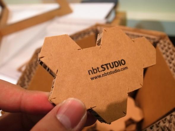 Ambihive壁燈,這是結合壁燈和揚聲器所有功能於一身的設計。使用瓦楞紙板以及陶瓷揚聲芯片,加上LED燈泡以及採用藍牙傳輸,兼具功能性與美觀。更棒的是,這完全可以在網路上直接下單訂做。 展覽現場 這一次nbt.STUDIO能夠順利參展,除了作品的特殊性受到了主辦單位的青睞之外,還要歸功於台灣本土優秀企業的支持與協助