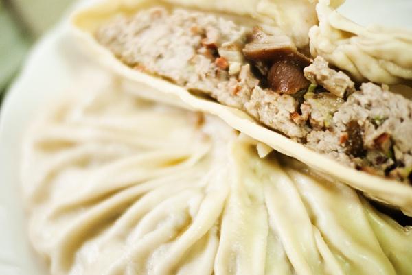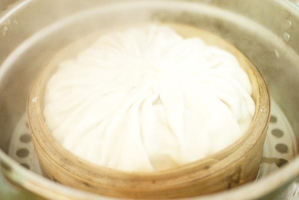然後把大燒賣皮攤在蒸籠上,然後一層一層的某上肉餡。蒸上40分鐘,宇宙大燒賣就這樣完成囉!