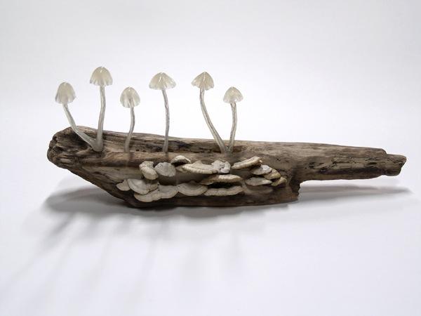 Great Mushrooming設計了一系列環保蘑菇燈,將這些小小的LED燈泡置於可回收利用的天然木料所製成的底座上,更顯得渾然天成。並讓燈泡蔓延、自然環繞於漂流木上頭,象徵事物的重生。