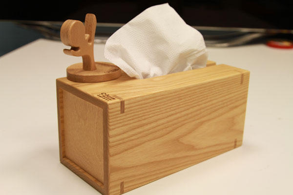 再來,看完的3C與木頭的結合,我們來瞧瞧木匠兄妹另一個同樣相當生活化的商品,大家每天都用的到喔!是用實木手工製作的「源面紙盒」。
