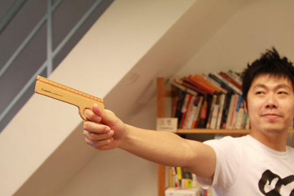 小時候大家一定都玩過用木筷子做成槍射橡皮筋的把戲,橡皮筋槍這玩意兒在我們的童年裡佔了一席重要的地位,同樣地,尺這個上課必備的文具,也是充滿兒時回憶的,當橡皮筋槍與尺結合後,槍尺這個具趣味與功能性兼具的文具就此誕生啦!