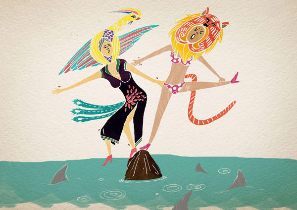 「衣」傳統的旗袍與現代的比基尼(朱雀與白虎)