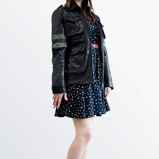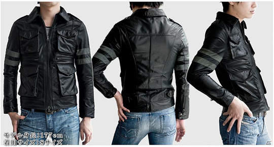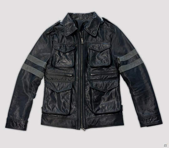 小編認為這件皮衣應該就是整個套裝的最大賣點,光皮衣單價就直逼各大時尚品牌。售價不輸 LV、GUCCI的這件皮衣,當然也不單只是唬爛、賣名氣,欺騙各位粉絲的坑爹貨。整件皮衣為柔軟的高級牛皮製作,產生自然的厚實手感,手臂上那兩條灰色條紋則是山羊皮所製。左右外側各有兩個口袋,內裡的左右兩邊也各有一個口袋。是件完全符合原作中的高功能外套,使用起來相當便利。內側繡上了「Leon.S.Kennedy」的字樣,袖口鈕扣設計是大總統直轄菁英組織DSO徽章。拉鍊部份也選用了耐高磨損的IDEAL拉鍊,讓各位玩家打起殭屍來可以更順手、無後故之憂呀!!((大誤XD))