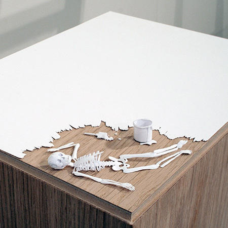 Peter Callesen喜歡用他的模型為觀眾說故事,每個模型需要長達兩週的時間做草圖、切割和折疊。看似簡單的創作,如果在切割過程中稍微一點錯誤,或是發現到無法摺疊出他所想要的模型,就前功盡棄,必須重新設計從頭開始艱難的工作。