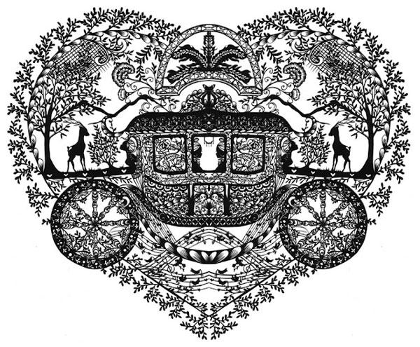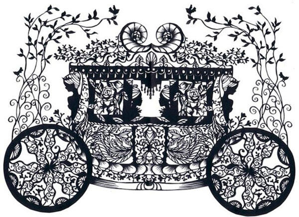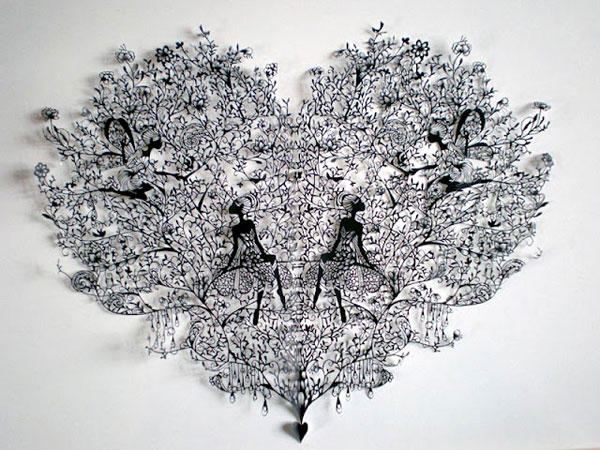 纖細的線條設計、對稱式的剪紙設計,讓作品呈現出獨樹一幟的特殊美感。陰影式的圖形設計讓作品在顏色變化上稍嫌欠缺的吸引力,但透過光線所透析出來的藝術美感,卻是一般剪紙作品所無法比擬的。作品中融入歐美、卡通人物、童話物語等元素之後,呈現出錯綜複雜的作品成果令人驚艷。