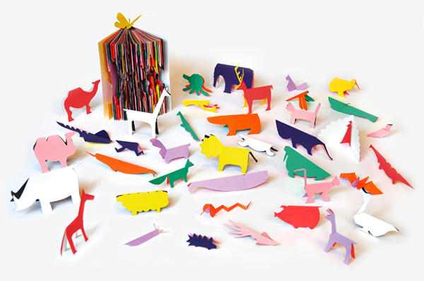 這本全世界限量 100 本的手工手作書,一共有 40 頁,七種不同顏色的內頁組成,翻譯成七種語言(英語、西班牙語、法語、義大利、德語、日文、韓文),你只要拿一把剪刀,沿著虛線剪下之後,就可以得到滿滿動物繽紛色彩的動物園啦!哪裡買?這本現在才 100 本的小書很早以前就售窘了,那還是很想要手作的動物園沒關係,手巧如我們就自己做吧!