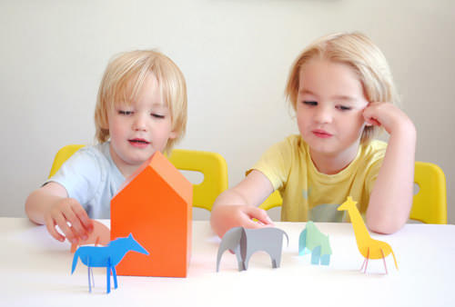 想要有可愛的動物園也不一定要買上面介紹那本專業的小書,只要準備幾張色紙,下載印出來的動物模版(這裡下載),一隻不鈍的剪刀,鉛筆。