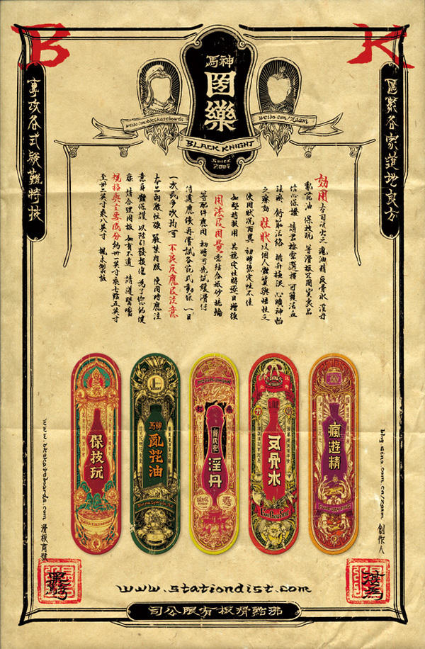 在中國一個叫做「Black Knight」的設計公司,它們發現中國醫藥學已經根深蒂固中國文化許久,但是現在的年輕人不僅不了解之外還非常沒有興趣,於是結合最飛遜的滑板文化,讓年輕人越滑越活絡筋骨。