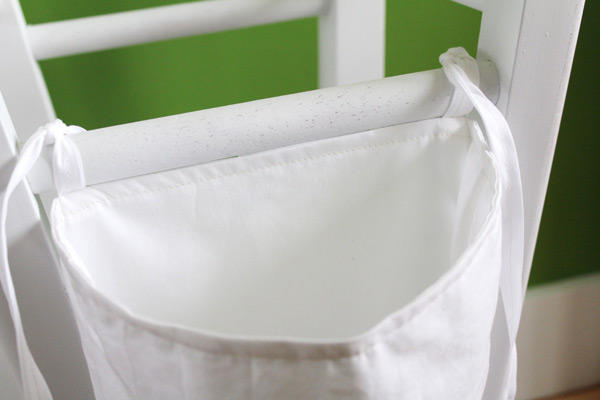 Christina 在椅腳支架綁上幾個她親自縫紉的大小不同尺寸的布袋,沒時間縫布袋的朋友們,我們建議可以綁上購物袋或是利用舊 T-Shirt 做成袋子綁上去即可。椅腳支架可以發揮的空間很多,把一邊的支架空下來,可以直接披掛紙張,或是碎布等可披掛的物品,或是放上幾支 S 掛鉤應該也不錯。