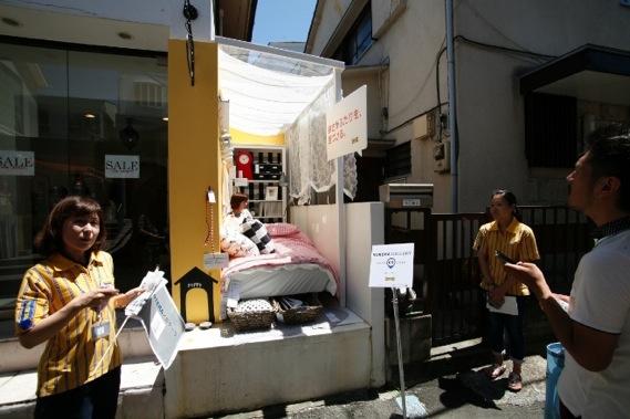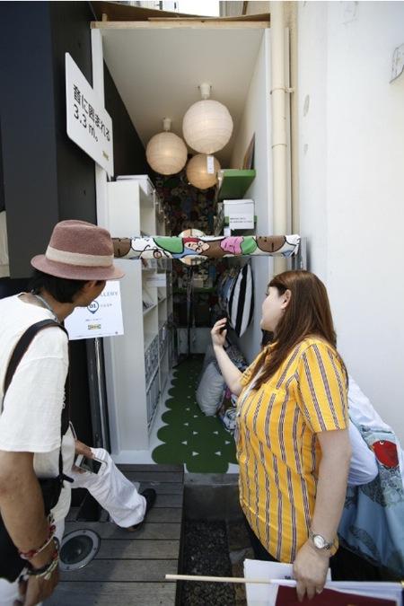 去年「最窄空間」特展也在京都展出過,一推出就立即吸引大批民眾前來朝聖參觀,大受好評!所以今年於東京又再度舉辦。這回的展示場所,全是店鋪與店鋪間的狹窄間隔,在原宿往涉谷方向的貓街上,沿途設置了14個點,每個點的空間大小不一,佈置的主題也大不相同,唯一個共通點就是展覽空間都很狹小! 即便空間既窄小又擁擠,那些書櫃、桌椅、層架,甚至是床鋪、上下臥舖,全都安穩、從容地躺在那裡,等著接收路過民眾讚賞及驚奇的目光。