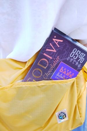 包包可以兩面背,露出哪一面都很有特色,一面可以折下來縮小體積,另外一面則可以放些歐咪啊給,像是隨便買都可能比這個包要貴的G牌巧克力(實在是因為這個系列價格越來越親民了啊!)
