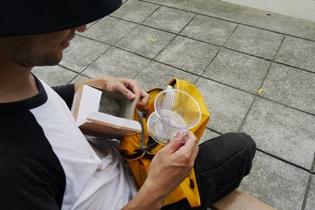 有濾紙杯是打算來個「路沖」-- 在路邊沖咖啡嗎?連磨豆機都扛出來也太誇張了!要不要這麼新鮮!