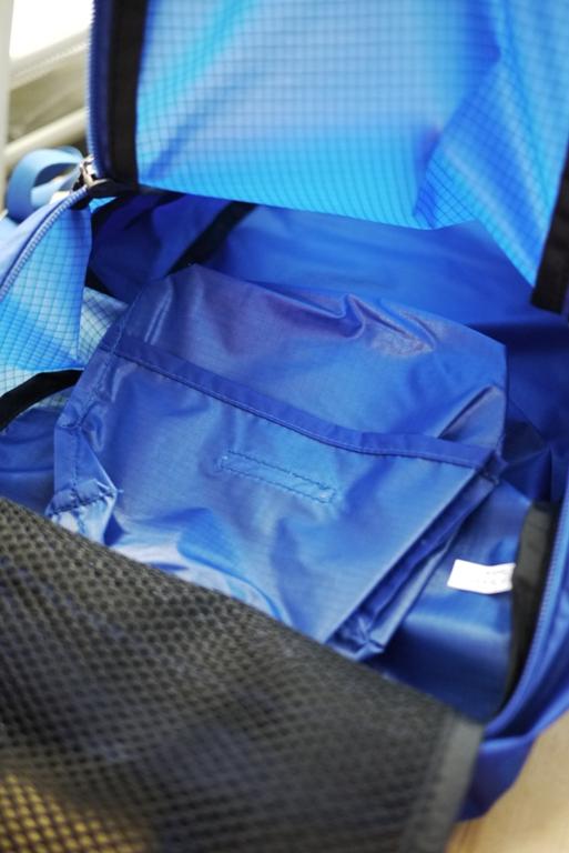 魔鬼藏在細節裡,沒想到天使也藏在細節裡,貼心的網袋設計可以讓各位大人物放置重要的小物品,掀開網袋後,又可以看到另外一個小袋子,是說要拿來放東西也不是可以,不過它有一個更厲害的用途,那就是將這個雙肩後背包包收納成