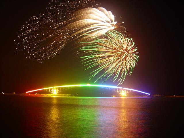 但你可知道,讓花火節成功的最大功臣是誰嗎?位於澎湖馬公市澎湖青年活動中心旁的西瀛虹橋,又名為彩虹橋,是當地著名的景點之一。彩虹橋是每年澎湖花火節煙火釋放地,而夜晚的彩虹橋加上煙火的美,形成了一幅美麗的圖畫…!