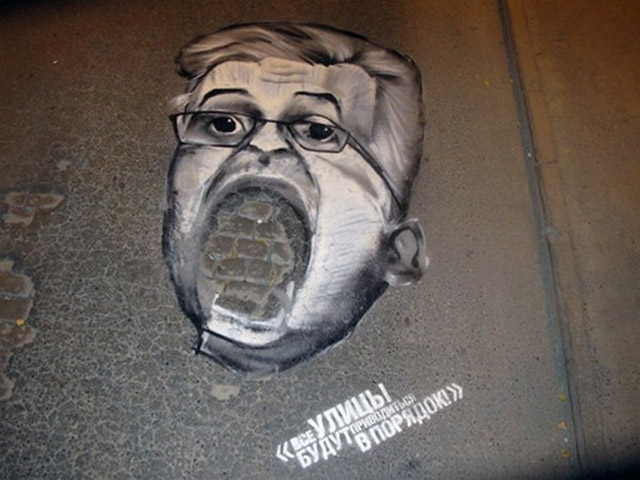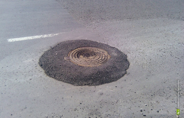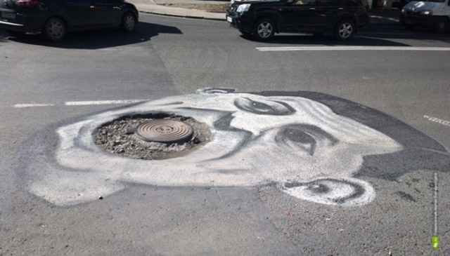 葉卡特琳堡(Yekaterinburg)位於歐亞邊界,是俄國第四大城,不僅具有其歷史意義,也是重要的交通樞紐,偏偏 Yekaterinburg 的路面非常不平整,到處坑坑窪窪的,不僅危險、也有害市容,俄國的 URA.RU 網站曾不只一次針對這個狀況做報導,但卻得不到任何回應,於是他們和廣告公司 Voskhod 合作,利用一個月黑風高的夜晚,在市中心挑了三個坑洞,將斯維爾德洛夫斯克州州長、葉卡特琳堡市長以及副市長的臉用噴漆塗鴉上去,希望能夠將這個長久的問題有效地『陳情』上去,結果不僅引來近三百家媒體的關注,大量的新聞曝光也讓全國人民盯著瞧,至於被點名的政治人物,也不得不正視這個問題,終於願意下令將路修平了!