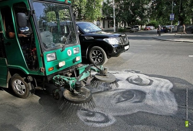 據說消息傳出的隔天,市府本來只出動工人將這些塗鴉抹掉,於是 URA.RU 再接再厲直接就地補刀,在旁邊繼續留下一句『需要被抹平的不是這些塗鴉、而是我們天天在走的馬路!』,這才讓當地政府甘願修補路洞。