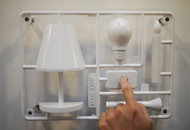 看起來像是玩具模型框架的光型是由王郁閔、賴永茂設計,這個燈具包含了檯燈、燈泡、蠟燭和手電筒四種平常隱身於民宅之中的燈光用品。它不只是一個造型特別的夜燈,當你用手觸碰控制開關的時候,光源會轉換成四種不同的呈現方式。每種不同的光型,會隨著它的外觀作亮度的調整,這讓它能夠隨著不同需要和情境提供適當的變化,親熱的時候總不想要有個電燈泡吧?燭光比較好!