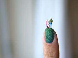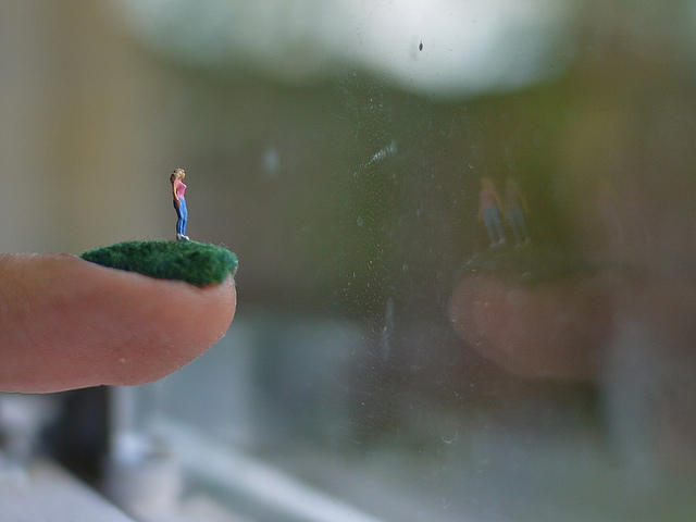 喜愛指甲彩繪的藝術家Alice Bartlett讓指甲上長出完全難以想像的草皮,還能讓人站在上面(感覺就好刺)!原來Bartlett 異想天開的把房屋模型常使用到的草粉、小樹、小人等材料,全部放在指甲上面,在指甲上創造出一個微型世界。