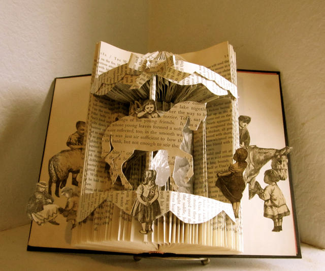 是由美洲出發、在國外素有「祖母的地下室收藏」之稱的藝術網路商店平台Etsy,以手工藝成品買賣為主要特色,鼓勵那些厲害的手作創作者為自己的產品做行銷,並賣到世界各地去,讓原有的藝術創作市場變得更不一樣。在Etsy上就有一名來自德州,名為蘇珊‧荷瑞(Susan Hoerth) 的手作藝術家,她搜集了被丟棄的童話故事書,加以重新設計、組合、編排,讓故事中的人物彷彿真的從字裡行間裡跳了出來!