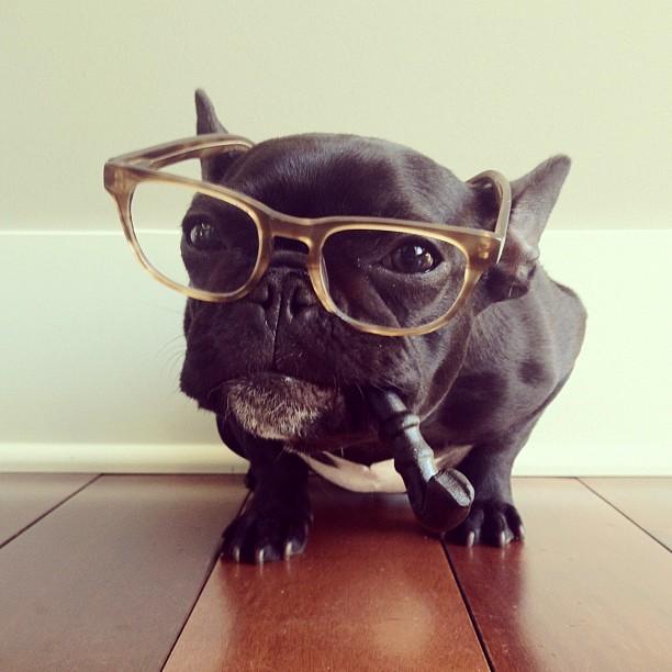 平常相當好動的法國鬥牛犬沒想到竟然如此冷靜的配合主人裝扮,更重要的是因為鼻腔較短的關係,需要藉由急促的呼吸頻率來散熱,在嘴巴裡叼著東西還能如此的優雅是相當難得的,相信一定經歷過相當多的NG照才能完成這組系列照。(或是合理懷疑他被兩倍的狗點心給給收買了)