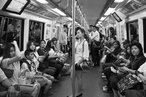 拍攝方式是當這位攝影師進入地鐵之後,隨意的喊出一個單字,然後捕捉那一刻大家的表情和眼神,希望利用這種方式讓每個人能走出自己的小宇宙,並且與現實存在的空間互動。在這個系列中,攝影師喊的字句像是「omelette」或「alligator」(雖然是亂喊一通,但會特意避開敏感的字眼),大眾的反應也的確很有趣,有的人是驚嚇到呆滯了,有的人看起來很困惑,有的人完全不在乎陌生人說了什麼,這些黑白照片中,攝影師「Benz Thanachart」簡單的就把陷入科技世界中的人們重新拉回了現實世界中。