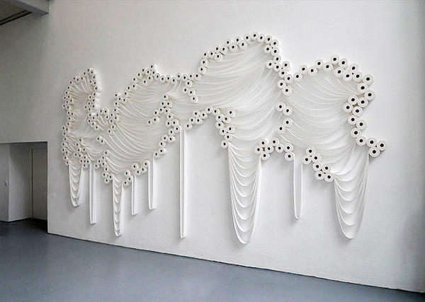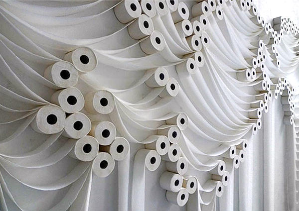 由土耳其藝術家 Sakir Gökcebag 創作,以捲筒衛生紙做出一系列作品『Trans-Layers』。層層疊疊輕柔飄逸的無重量感,加上自然白色的舒適視覺,Sakir Gökcebag 可說是將衛生紙的原生特質發揮到極致!