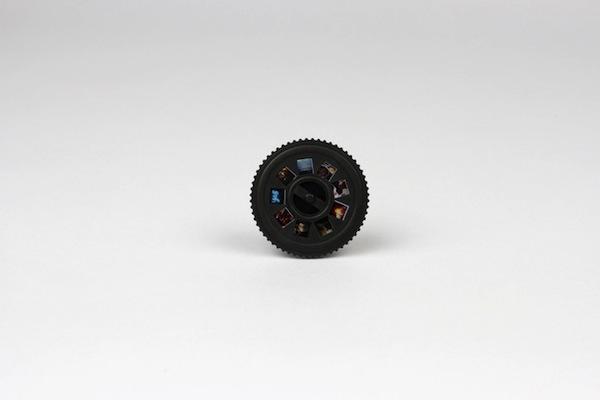 沒錯!他的確是將數位的影像複製到底片上,就像是使用數位器材拍攝的電影,轉換成電影院的播放用膠卷一般。只需要透過下載Projecteo的應用程式,就可以將自己Instagram相簿上的照片製成底片,一次最多能指定九張照片,經過特殊器材裁切與包裝,就能夠成為看起來像小齒輪一般的幻燈片。