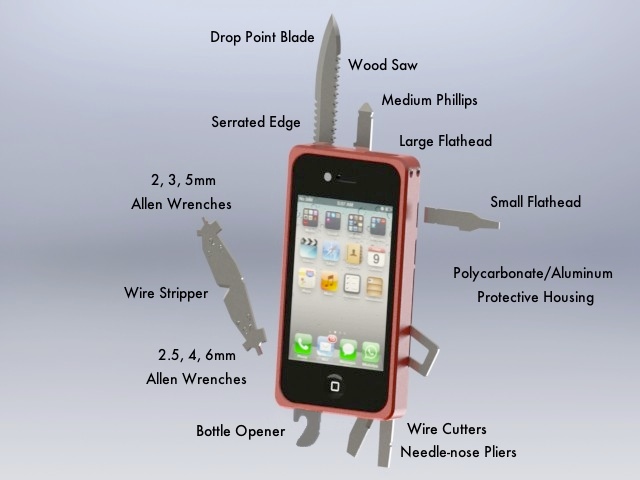 由 TaskLab 發想的 TaskOne iPhone 保護殼,將瑞士刀的元素打散重組為手機保護殼,內嵌 12 支工具,可做 16 種用途,剪電線、修腳皮這種小事自是不在話下,要是認真起來,連切樹枝都能親身上陣沒在怕,實在是玩很大!