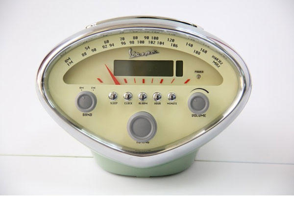『Vespa速克達造型收音機』:想想當年老爸追老媽時,騎的這台速克達,創造了多少爸媽心中的浪漫回憶,雖然也許不比羅馬假期更經典,這種年代的軌跡卻很難被取代。把過往的年代精華放在自己桌上,聽著廣播裡傳來的老歌,一邊把回憶蒙上一層泛黃,也是種辦公室裡的浪漫阿!商品資訊或購買請點這邊。
