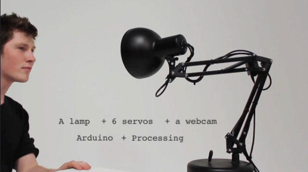 來自紐西蘭威靈頓維多利亞大學的三名大學生 Shanshan Zou、Adam Ben-Dror、Josh Doggett 找來將一支外觀超神似於皮克斯跳跳燈的檯燈,卸下它的燈泡之後,改裝上視訊鏡頭,再利用一些互動軟體,讓這個檯燈就像是寵物一樣會找主人、會閃躲、會偷看、還會因為不想睡覺而自己把開關打開XD,這個檯燈也取了一個很相似的名字叫做「Pinikio」(小木偶的名字),是不是真的很詼諧呢!