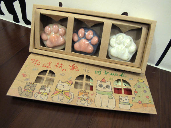 剛收到這個神祕禮物的時候,發現光是外包裝就費了不少心力,外盒上的塗鴉是可以和老闆訂做的喔!每個圖案外包裝都是老闆自己手工畫的,不管你想要送給愛貓人士,喜歡使用手工皂的朋友,當做聖誕禮物、生日禮物、紀念品等等都會讓人立刻眼睛一亮!