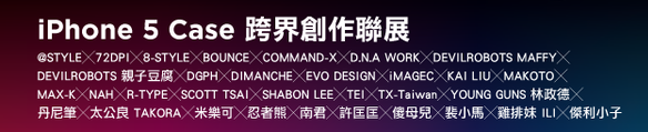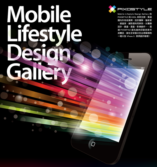 由 PIXOSTYLE 主辦,集結國內外知名人士共同參與,以圖像設計、插畫、漫畫、影像創作,透過 PIXOSTYLE 特殊的印刷技術做成 iPhone5 保護殼,搶先全球在台灣展出,藉此也讓大家看見每個設計師因不同的生活經驗而創造出獨特又具整體美感的藝術作品!