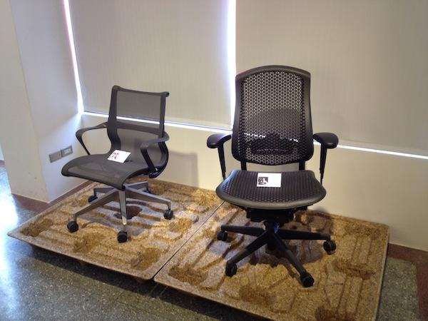 而Celle Chair則是以懸浮多孔蜂巢狀圓圈網織(Cellular Suspension)聞名,強調不管是嬌小的女性或是魁武的男性都能夠在這張椅子上找到最舒服的姿勢與狀態。這強打的專利椅面是在設計階段時透過嚴格的市場調查、用戶評估,與人體工學、生物力學專家的意見才誕生出的,目的就是要讓使用者能夠擁有一張以健康舒適為主要訴求的智慧型座椅。
