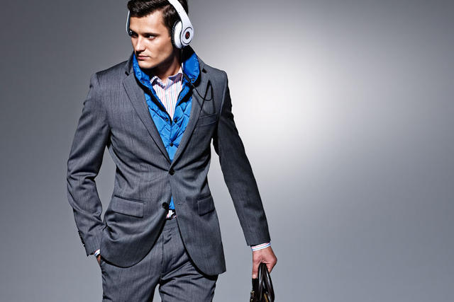 這套西裝是專門為了應付各種惡劣天氣所設計出來的,在西裝的表布上設計了一層奈米層,也就是這一層讓西裝完全防水、防髒、防皺還可以不吸付臭味,在外套的裡層也配備有完全防水的夾層,讓你心愛的智慧型手機可以妥當的安置在那裏;在領子的下層,配備有一個耳機孔,讓你聽音樂於無形,帥勁絲毫不減。