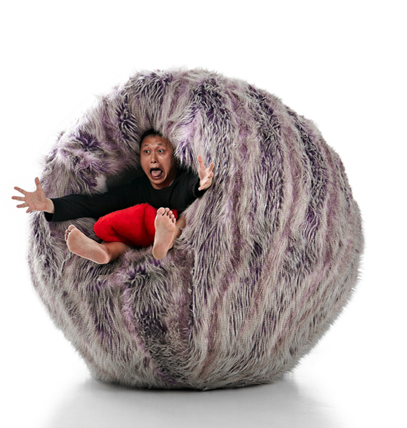 當奶奶的哪有不疼金孫的道理,但是為何要這樣嚇孩子呢?其實是因為設計師 Jason Goh 小時候很愛玩餐桌上的食物,其中魚丸是他的最愛,奶奶實在 恨鐵不成鋼,於是編出一套故事來嚇唬這個小鬼頭,告訴他如果繼續玩弄魚丸、它就會變身成一顆全身長毛的魚丸怪,然後把他吃掉!長大後的 Jason Goh 乖乖照著奶奶的說法,不只做出一張魚丸椅,也順應故事的情節表演一齣被吃掉的戲碼,實在是可喜可賀阿(?)