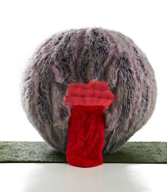 魚丸怪獸椅除了有毛絨圓滾的表皮之外,還有一張櫻桃小口以及...很適合當成典禮紅地毯的舌頭,歡迎大家來給它"吃"一口,雖然應該不大好坐,不過卻是一個非常有趣的創作!