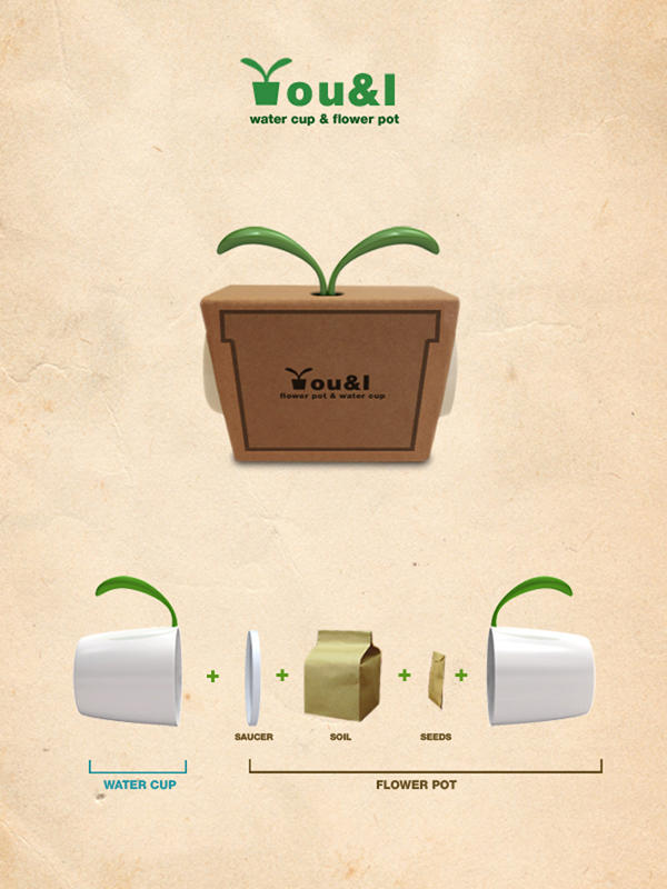 想要養株綠色寵物,卻又怕時常忘記澆水,或許可以考慮擺上一組「You & I」在家中,由韓國設計師Woohyeok Jeong所設計的You & I從包裝看起來就像一棵精緻的小盆栽,打開後有兩個相仿的馬克杯與土壤種子組合。而這兩個馬克杯可不是兩個人類的情侶對杯,而是人植戀(有這個說法嗎?!)的專用組合,其中一個用來栽種植物,另外一個則是留給人們使用的正常杯子。