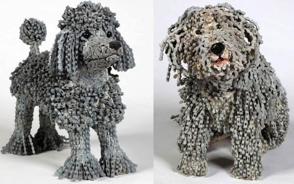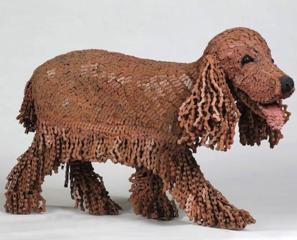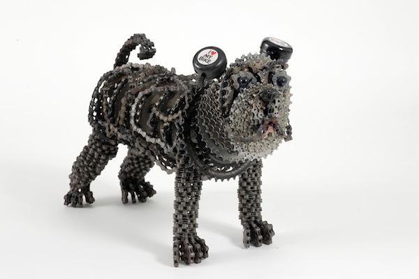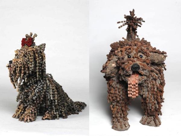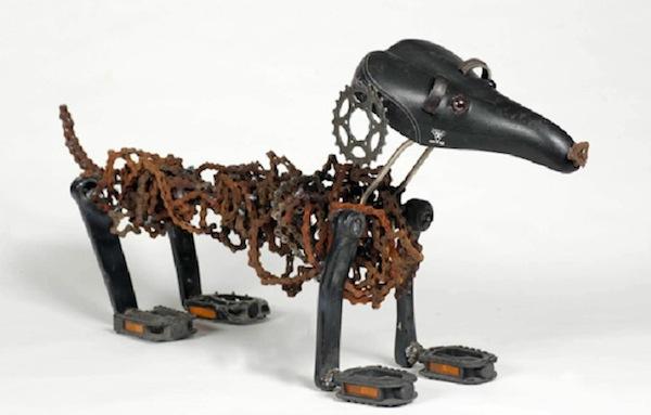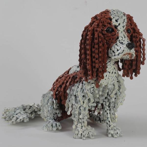 居住在荷蘭的以色列藝術家 Nirit Levav 原本是位婚紗設計師,不過多年的設計生涯讓她感覺到無趣,想尋求自我突破而開始探索新的創作素材與主題,最後在單車店看到一堆廢棄的鏈條,她立刻明白就是它了!Levav 將心愛的單車與狗狗元素融合在一起而完成了這一系列的鏈條狗雕塑。