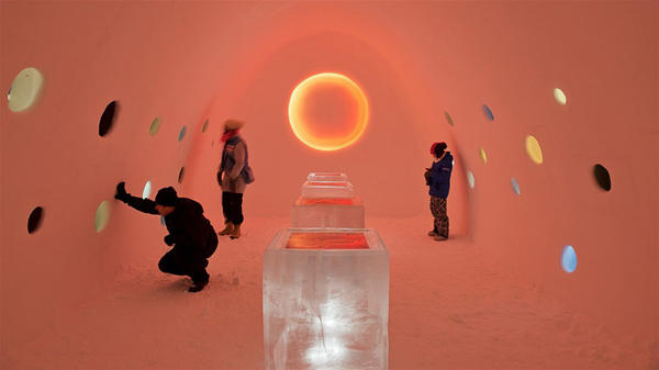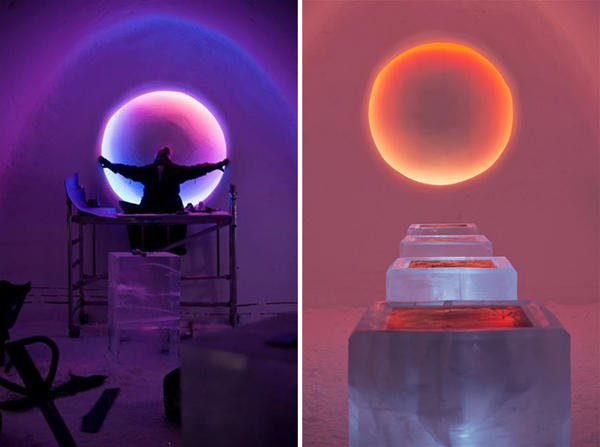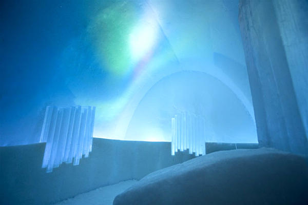 來到這兒的藝術家,有些是經驗十足的老手,也有些是根本沒看過雪和冰的菜鳥,所以創作的過程就像個小型的討論會,在開放和互動的環境下,互相討論,互相激發、激盪出各種創意,半透明的冰經過堆砌、切割、鑽鑿、拋光,再配合燈光的點綴,成了最超現實的空間,像是有一顆顆龍蛋散落四處的 Dragon Nest,有一滴滴雨點滑落於地的 Rain of Memories,有如同極光般夢幻的 Northern Lights,有彷彿深海般寧靜的Blue Marine等等,當然,也少不了讓眾家旅人交換心得的用餐區和酒吧區 ICEBAR,房間中的每個細節都是工作人員最親手親腳的親力親為,毫不馬虎。