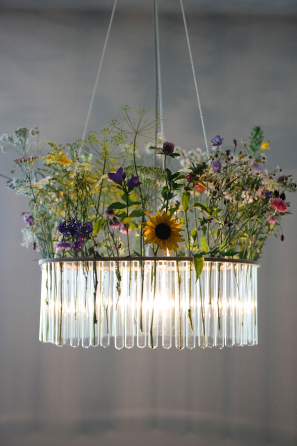 Pani Jurek 將實驗室內常見的試管架圍成一圈木框架,圓圓的孔洞安插一支支細試管,透明的玻璃管身看起來就像水晶吊燈般清透,配上淺色木頭就很有味道!再加上屋主的美感自由妝點,在安全前提之下,就能衍生許多變化。