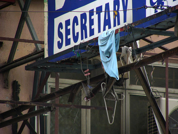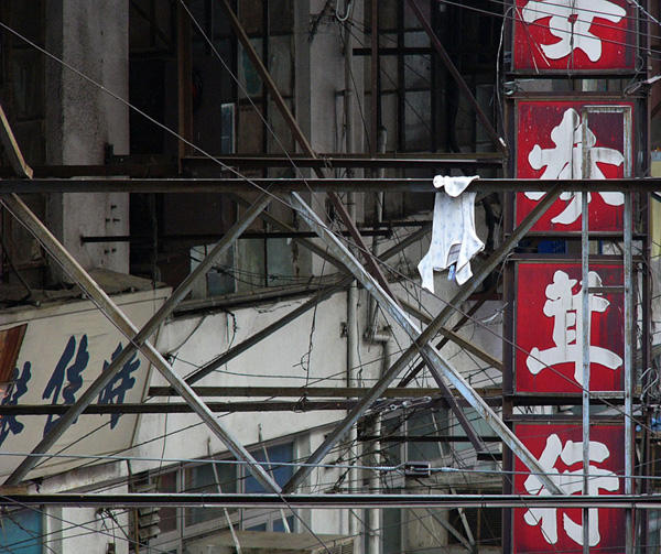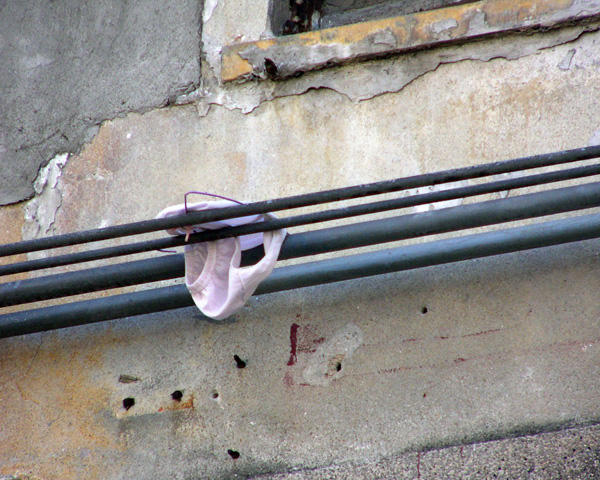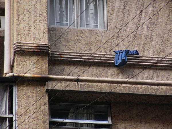 攝影師 Michael Wolf 在香港工作的時候,隨手把掉在路邊、掛在空中、甚至是垂掛在店面招牌上的衣物景象拍攝下來,似乎這些衣服在風吹雨打漸漸變色的過程中,也正在呼喚主人們,有點慵懶(?)無奈的垂墜感,也讓有點死寂的都市增加了不少生氣,不知道這系列照片,有沒有實際上幫助弄丟衣服的朋友找回被風穿走的小褲褲呢XD?