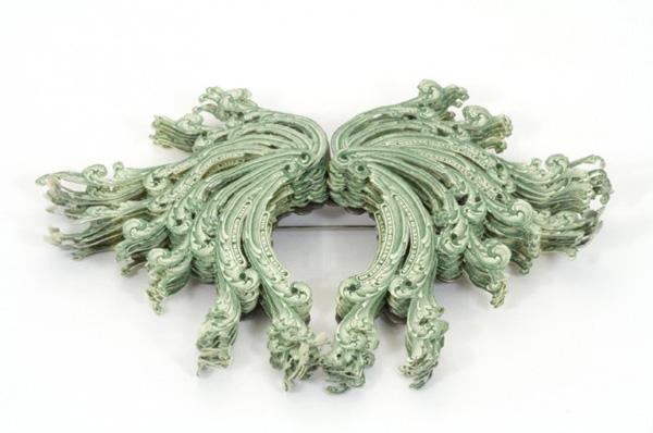 該設計師將許多一美金的鈔票,將上面的花樣精細地切割下來後,一層一層組裝起來,透過排列和特殊手法處理之後,就成了奇妙圖案的裝飾別針,她認為,在當今社會中對於裝飾的概念已經不像以往單純,很多人會因為自己穿了什麼而有不同的自我感受,而這款鈔票裝飾品,似乎也會帶動穿著的人另一面心理情緒。