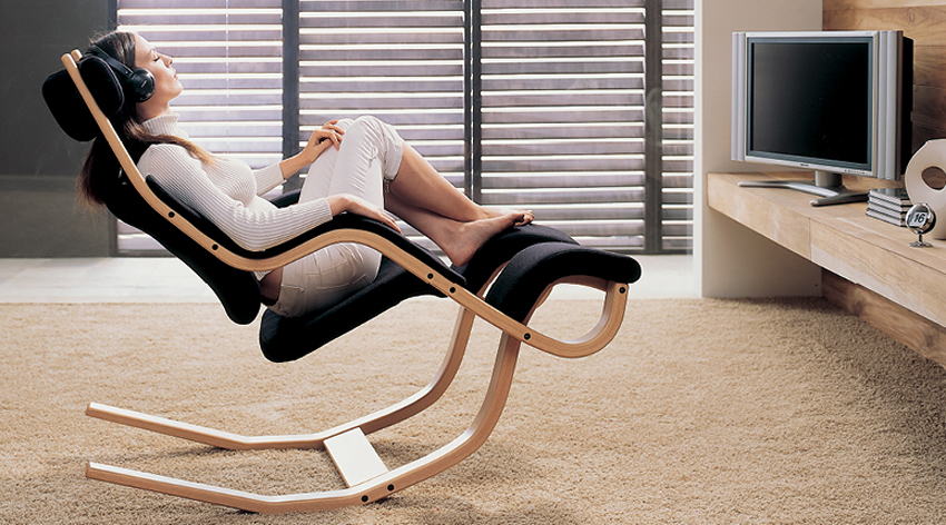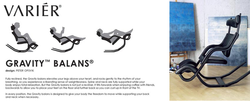 一般我們認識的搖椅大概只有一段,有些休閒椅可以抬起腿部支撐架,那就算它兩段吧。但是 Varier 的 Gravity balans 可是有三段喔,它像袋鼠腿般的超大支架,能穩穩地支撐你的體重,讓你不怕跌倒地再往後躺一點、再往後躺一點,就像躺在沙發上一樣直接入睡。