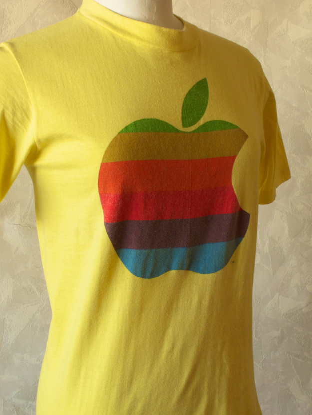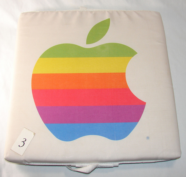 廠商為了打品牌,通常會製作一些小東西印上自家 LOGO,沒預算的的當然就是面紙啦、原子筆啦,有預算的好東西能不能拿的到就要看你的運氣了。以下這些產品大多數是80-90年代蘋果公司用來行銷的小贈品,有鉛筆、T恤、購物袋、杯子…都是常見的贈品,都還停留在「彩虹蘋果」時代,不過隨著年代 久遠與品牌炒作(還有股價↑↑↑) ,從「紀念品」搖身一變成為「收藏品」,其中最拍賣價最高的是1985年蘋果贊助超級盃時在攤位上所擺放的旗幟,售價$1,099.99美金。