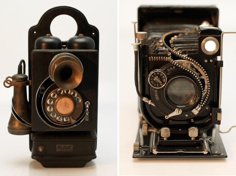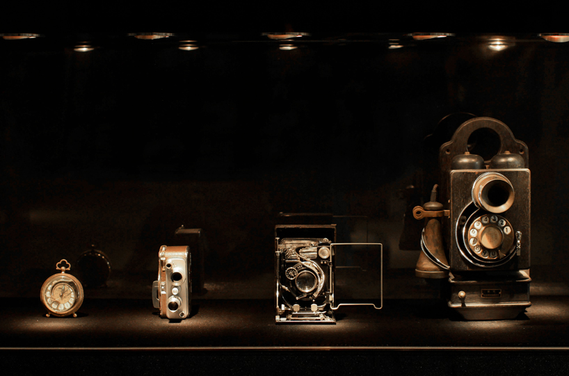 自左而右分別是 1920年代的機械鬧鐘、1940年代的攜帶式錄影機、1930年代的相機和 1910年代的電話,一字排開散發出濃濃的歷史氣息,只不過大家臉上都多了幾道疤,想想還是覺得有點可惜阿!