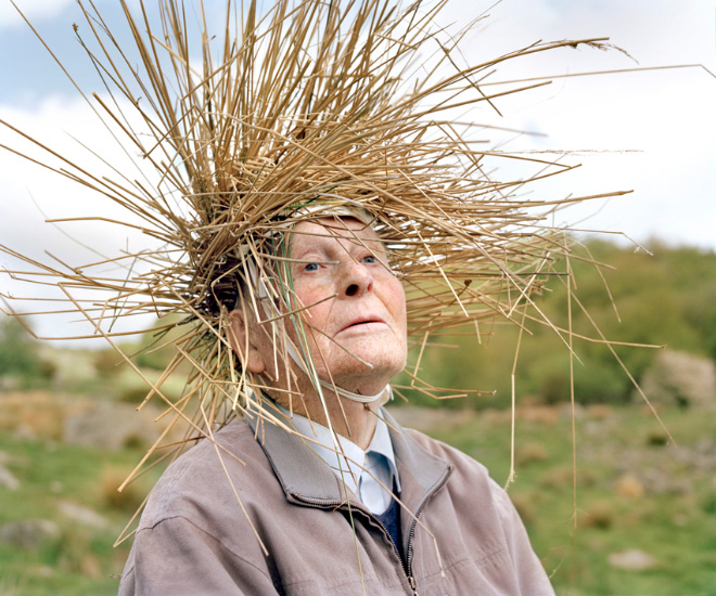有別於一般人對森林妖精的想像大多是奇幻而妖豔(最好還要長著一對尖耳朵),Riitta Ikonen 和 Karoline Hjorth 並不打算走這種譁眾取寵的路線。算是將奇幻程度濃縮到最小,不管是拍攝取景或者植物道具,務求最接近大自然的原始風貌。照片中的主角也不是貌美俊俏的時尚模特兒,而是一群退休老人,可能是農夫、漁夫、水電工、劇場演員、藝術家,利用自然樹枝、綠葉、紅花、稻草,就地取材與周邊景觀融為一體,裝扮成森林裡的精靈,彷彿是自然中的一份子。