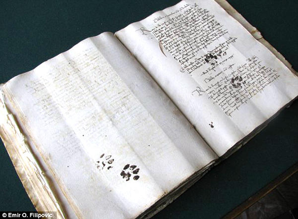 上網的時候貓咪也非常喜歡用趴在鍵盤上覆蓋這個回合,這樣的困擾早在中世紀就開始了,在克羅埃西亞 Dubrovnik State Archives 國家檔案館工作的學者 Emir O. Filipovic 某天發現一本 15 世紀時叫做「Lettere e commissioni di Levante」的手稿中,居然有四個爪印,非常明顯是一隻頑皮的小貓不小心踩到墨水後,一躍書上的成果,在當時的政府有可能因為會用文件毀壞的名義銷燬此書,但因為此書內容複雜且昂貴,就這樣被保存了下來。