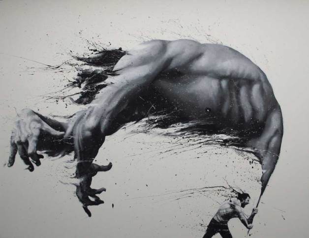 你絕對不敢相信,這一幅一幅細膩無比卻又充滿力道的作品,竟然只用「手指頭」跟「黑白兩種顏料」完成的創作。每一張作品中都散發出 Paolo Troilo 獨有的張力,讓我們不得不讚嘆這位真男人藝術家的藝術能量。最後附上一段他創作的影片,讓各位感受到他那灑脫不羈的創作張力吧!