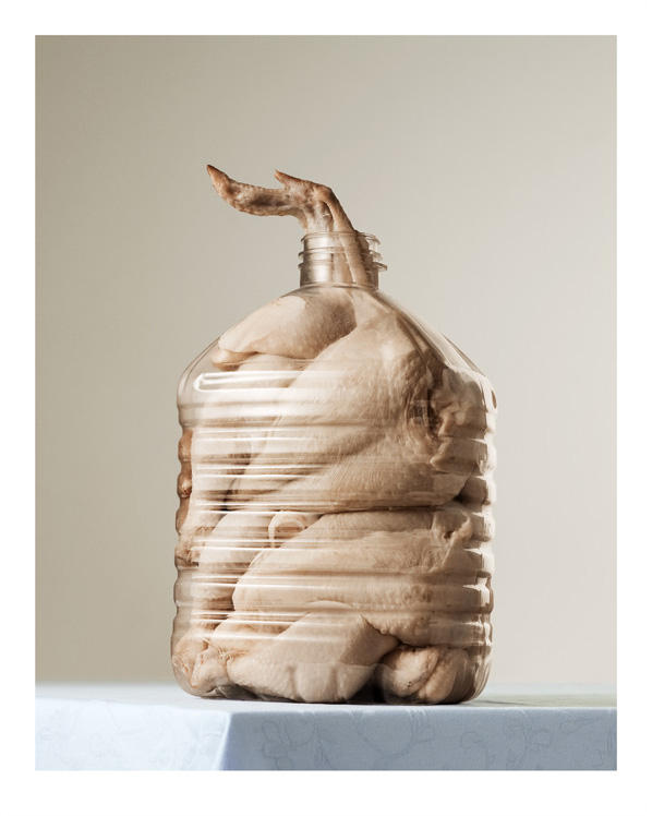 丹麥攝影師 Per Johansen 拍攝了一系列非常奇妙的攝影集,照片中的瓶子都塞滿各式各樣的食材,不管是蔬菜還是雞蛋,都可以看到內容物已經塞到滿過了頭,擠出來的食材突出或是垂掛在瓶口。