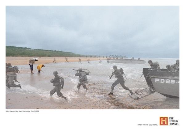 這一系列廣告是美國當地的電視台為了宣傳全新企劃的歷史頻道,而請來對歷史有相當興趣的攝影師Seth Taras操刀拍攝與合成。透過古早時候的紀錄片與老照片畫面,搭配上不同時光卻相同位置的現代照片,兩者融合一張饒富意義的 顯靈照 宣傳廣告。